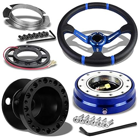 Blue Slit Holes Spoke Stitch 3 5 Deep Dish Steering Wheel U043 Horn Black Hub Blue Quick Release Works With90 03 Mitsubishi Eclipse 88 04 Lancer