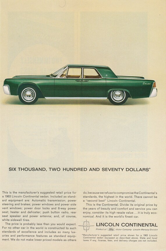 1963 Lincoln Continental Sedan Green Vintage Magazine Advertistment