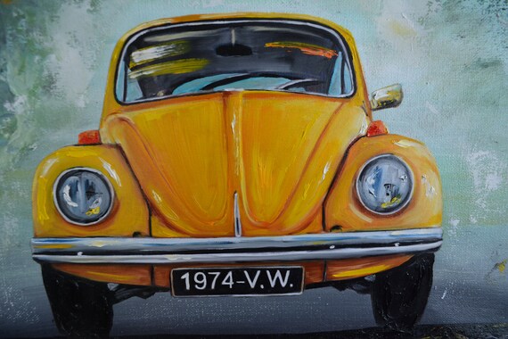 1974 Volkswagen Beetle Original Painting 16x20 Yellow V W Bug