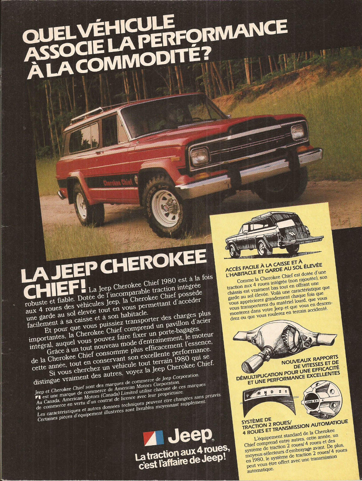 1980 Jeep Cherokee Chief 4x4 Original Ad In French