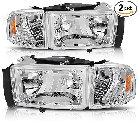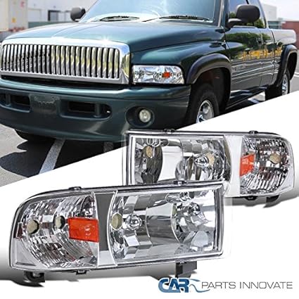 1994 2001 Ram 1 Pieces Headlight Replacement Lamps With Corner Signal Lights Does Not Fit Sport Model Chrome Clear Chrome