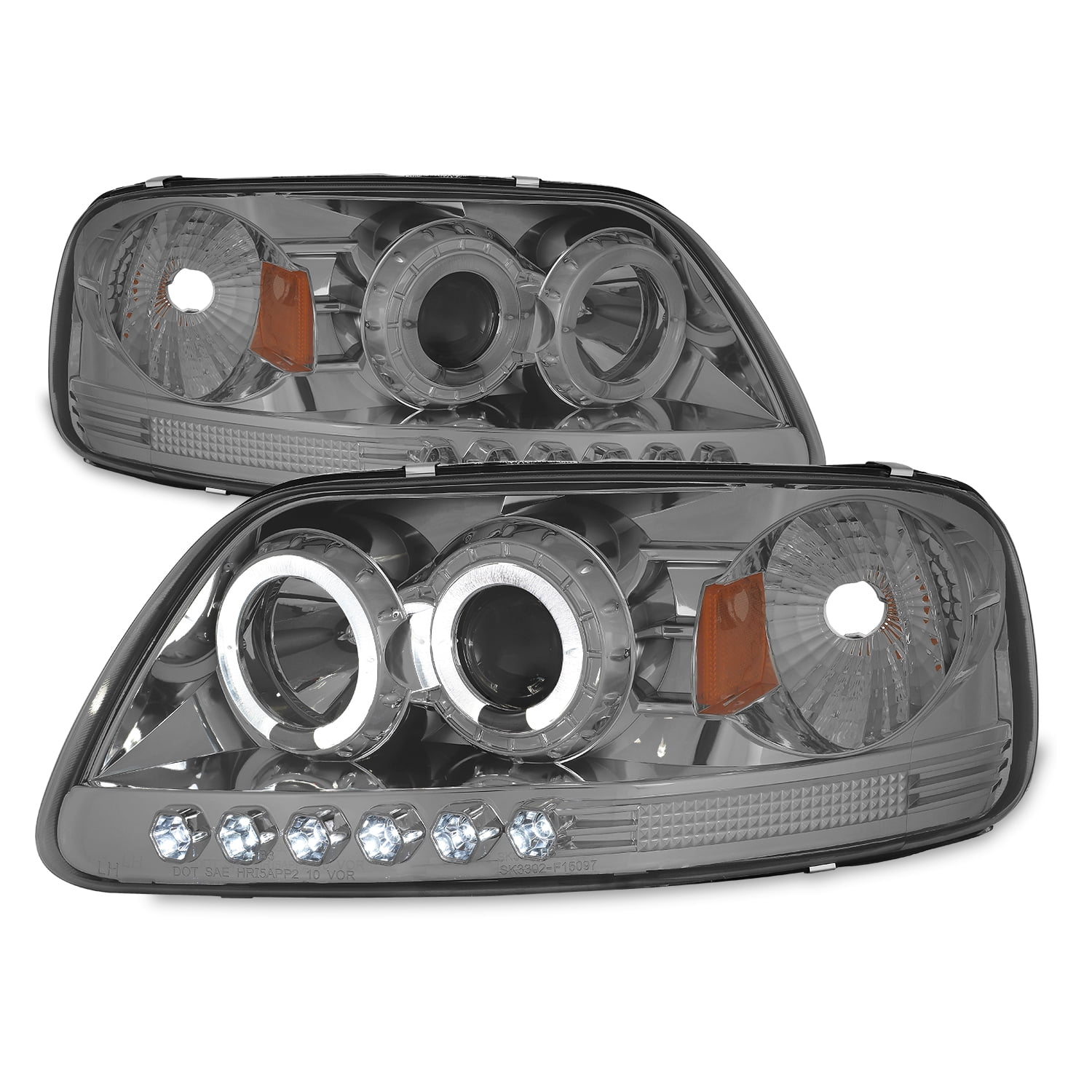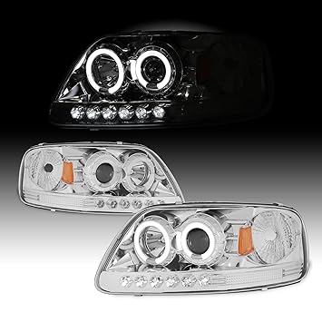 97 03 Ford F150 Dual Halo Led Projector Headlights W Amber
