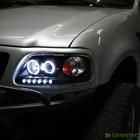 97 03 Ford F150 Led Halo Projector Headlights Black