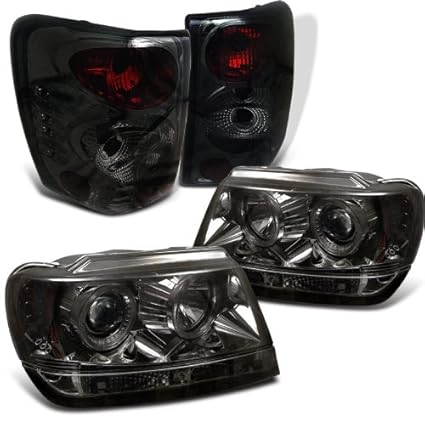 Jeep Grand Cherokee 1999 2004 Smoked Halo Projector Headlights And Led Tail Lights