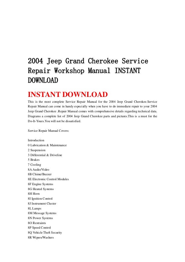 2004 Jeep Grand Cherokee Service Repair Workshop Manual