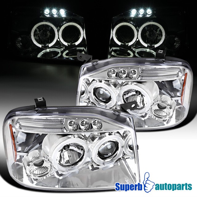 Nissan frontier 2004 chromesmoke dual halo projector headlights with parking leds by spec d 1 pair. For attention getting style and eye catching illumination you cant beat our led headlights. 1 pair white color bulbs 6555w.