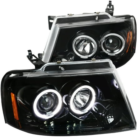 04 08 Ford F150 Dual Halo Led Projector Headlights Black