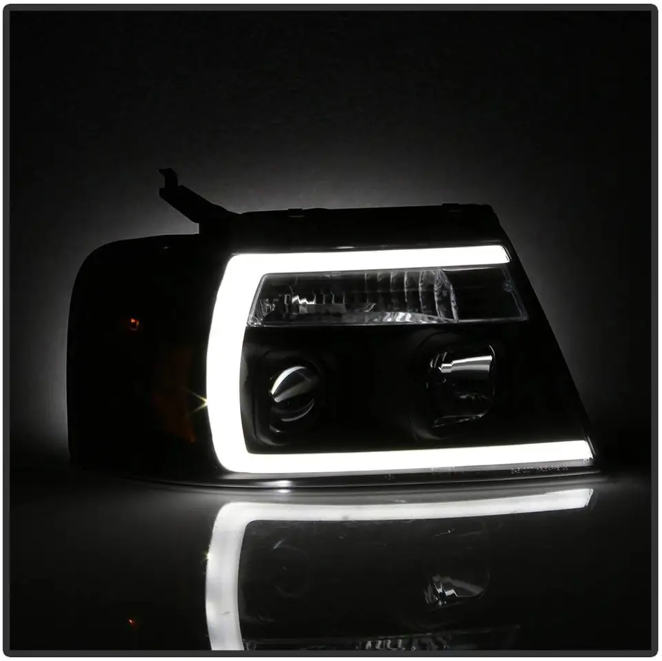 For 2004 2008 Ford F150 Full Led Daytime Running Lamp Bar Projector Headlights Black Housing Clear Lens Full Set