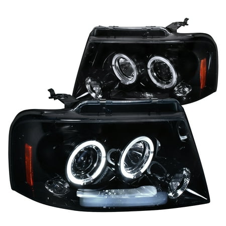 For 04 08 Ford F150 F 150 W Amber Reflector Sonar Led Ccfl Halo Projector Headlights Black Yd Pro Ff15004 Ccfl G2 Bk Walmart Com