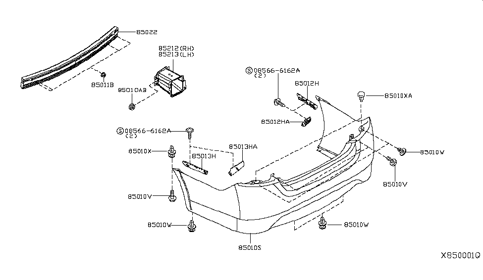 Nissan Part 85010 Zq00a Bumper Kit Rear Repair