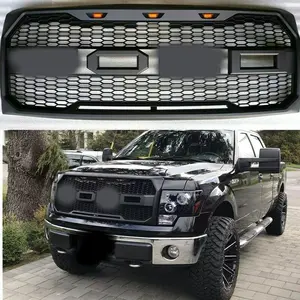 For Ford F150 2009 2010 2011 2012 2013 2014 Car Abs Plastic Black Front Grilles Shiny Front Center Mesh Grills With Led Light