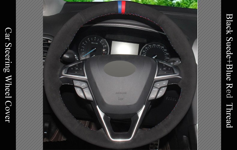 Black Suede Diy Hand Stitched Car Steering Wheel Cover For Ford Fusion Mondeo 2013 2014 Edge 2015 2016 Semi Steering Wheel Cover Shaggy Steering Wheel