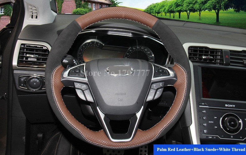 Palm Red Leather Black Suede Hand Stitched Car Steering Wheel Cover For Ford Fusion Mondeo 2013 2014 Edge 2015 2016 Taz Steering Wheel Cover Teal